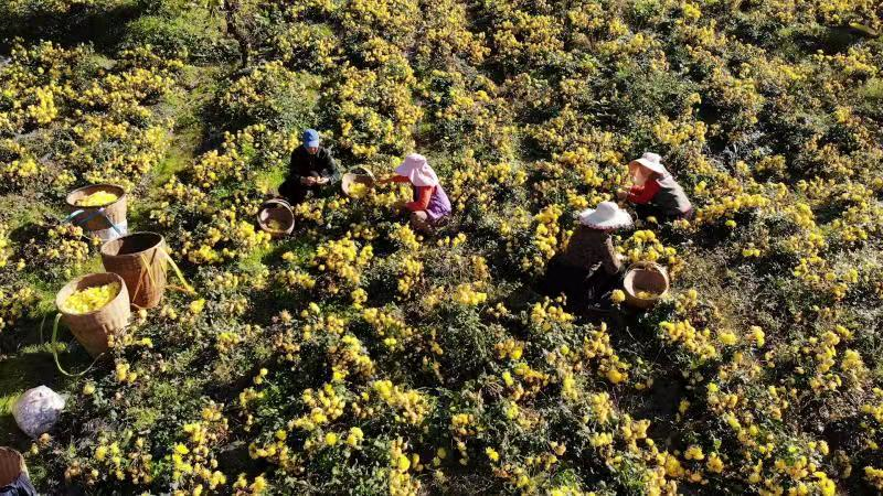 眼下,正是菊花盛开的时节。在忠县三汇镇金龙社区,近百亩的菊花竞相绽放、花香四溢,田间地头呈现出一派热闹的丰收景象。