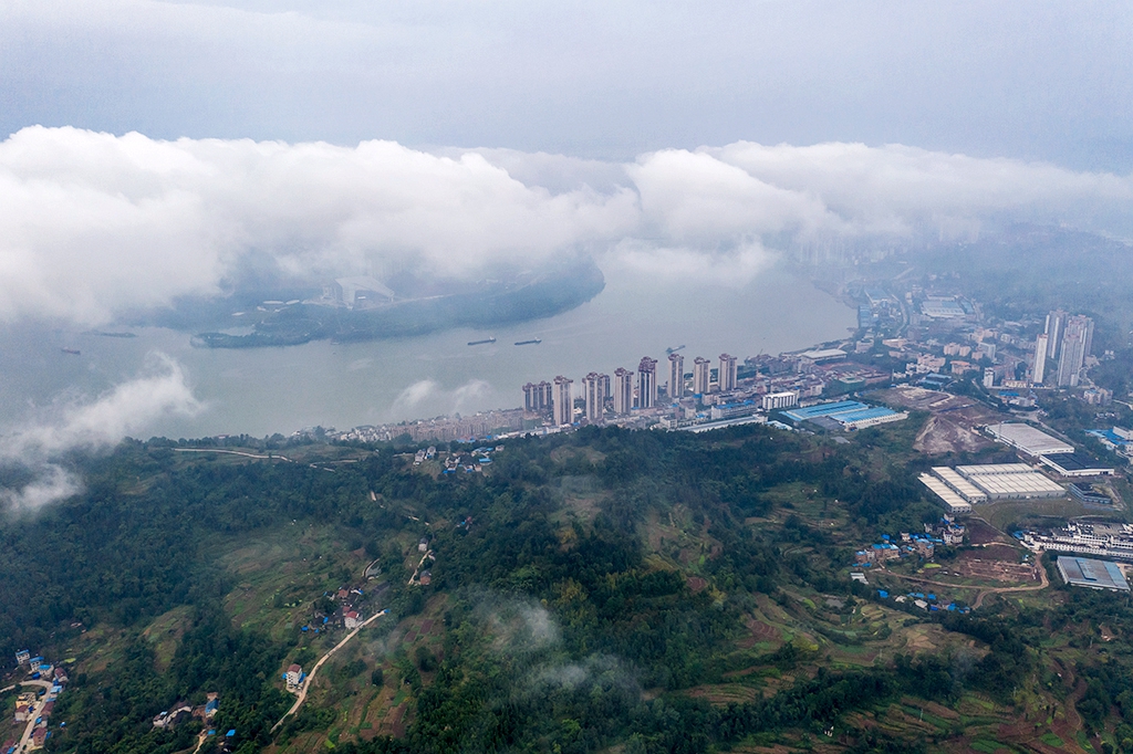 9月26日,记者拍摄的一艘艘船只航行在长江三峡库区巫山县境内。