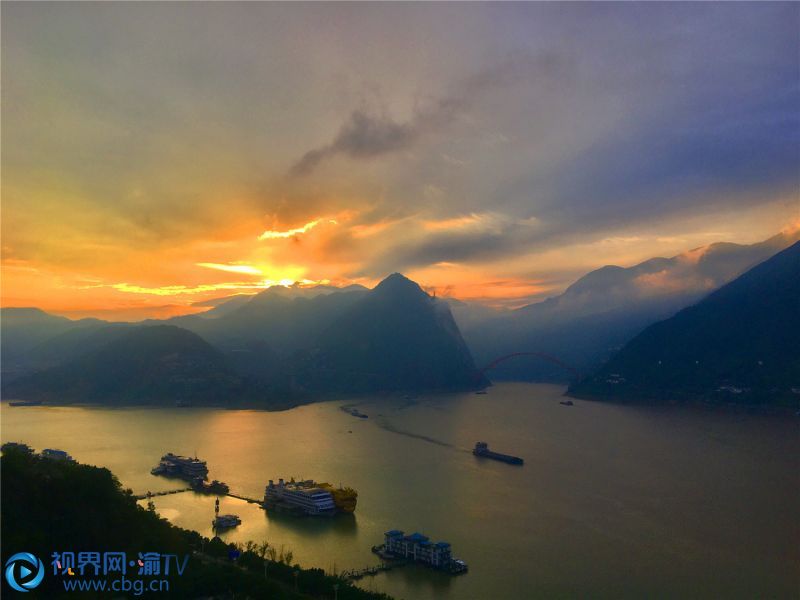 9月6日日出时分,在重庆市巫山县境内,绚丽的云彩与壮丽的巫峡交相辉映,美不胜收。只见天边的云彩由粉红变成橘黄,再又变成了浅红,挂在东方的天边,染红了峡江,给山峦也披上了一层薄薄的纱缦。