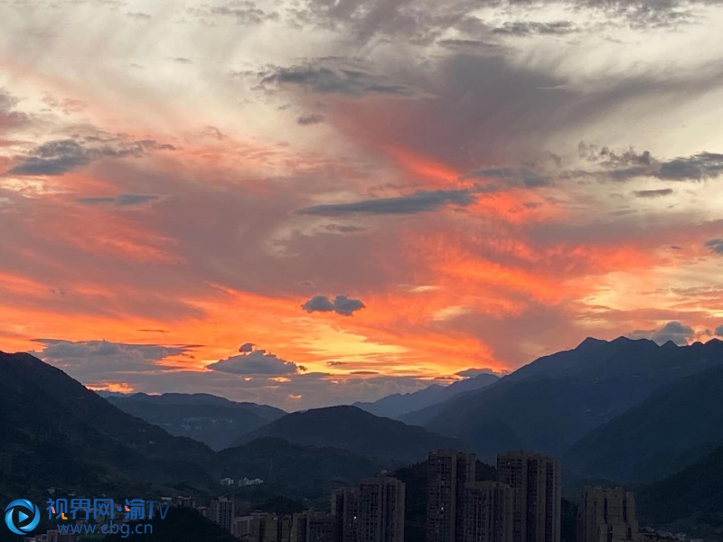 9月10日傍晚,巫溪天空出现了迷人晚霞,市民纷纷拿出相机记录下这美丽时刻。