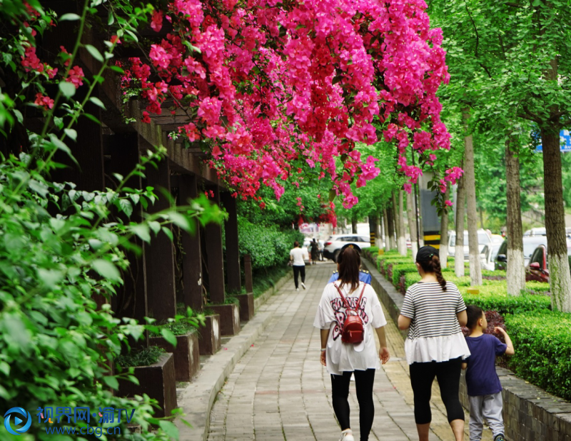初夏,姹紫嫣红的三角梅成为重庆忠县县城街头巷尾随处可见的风景线。