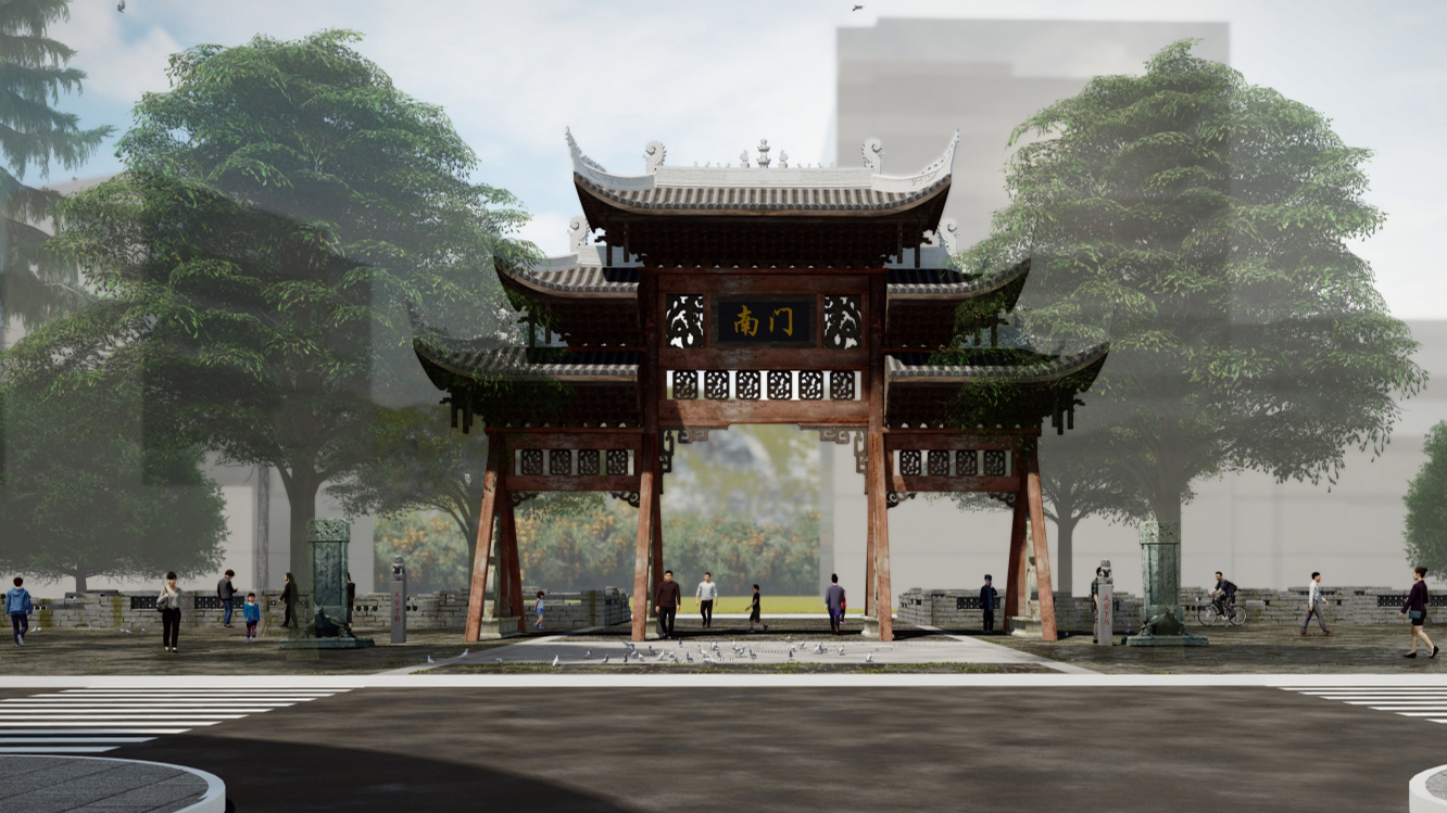 自4月下旬,石柱县启动县城玉带河南门口南门牌坊建设工作以来,南门环境提升工程已进入主体结构安装阶段,预计在6月30日前完成项目建设。