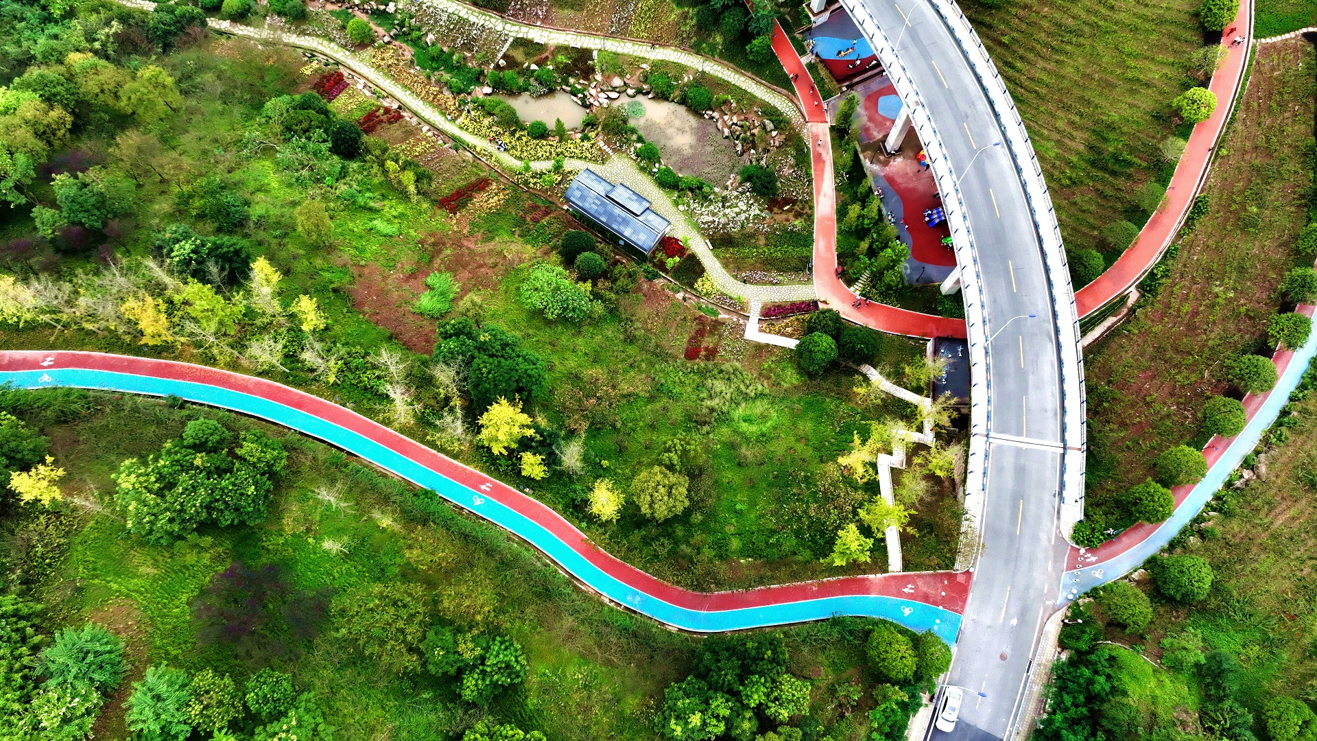 立冬过后,忠县白公生态文化公园层林尽染,恰似一幅五彩斑斓的水彩画。