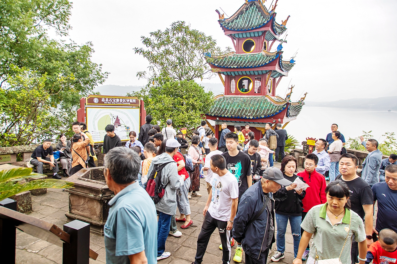 石宝寨双节期间游人如织