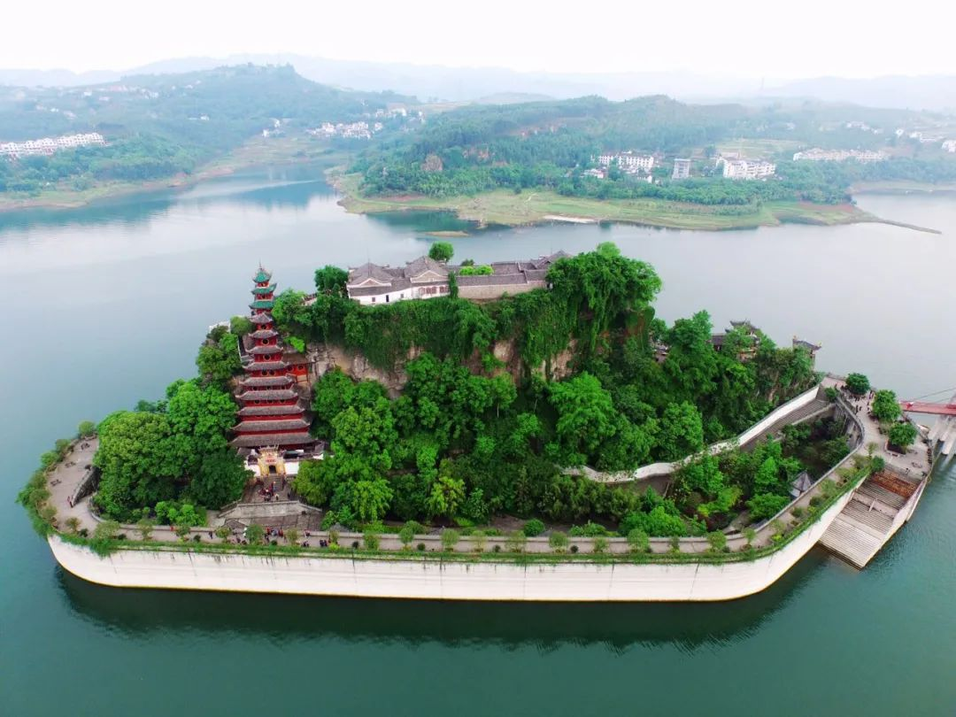 10月5日,长江忠县段水位接近172米,吸引2000多名游客前往石宝寨观赏“江中盆景”这一独特景观。
