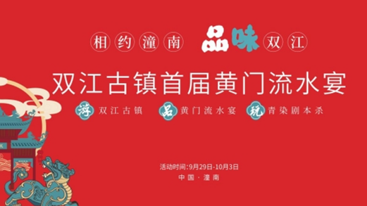 中秋国庆“双节”将至,八天假期,足够寻一处好吃又好玩的地方欢度佳节,在聚会中品味千年古镇风韵,体验不同的“筷意”人生。“相约潼南 品味双江”双江古镇首届黄门流水宴将于9月29日—10月3日在重庆潼南双江古镇盛大开席。