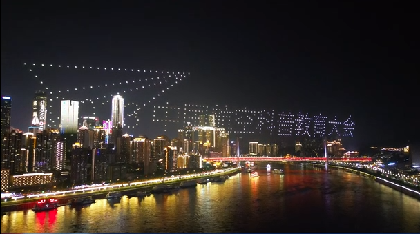 2023中国航空科普教育大会无人机光影秀点亮南滨路夜空