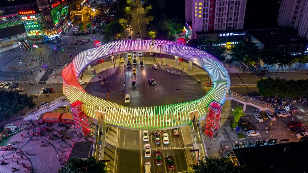 这个人行天桥超炫!来感受“时空穿梭”吧