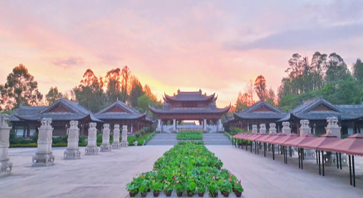 在重庆市大足区宝顶山,当太阳冉冉升起,霞光穿云破雾渲染了整片天空,云海奔流涌动,蔚为壮观。