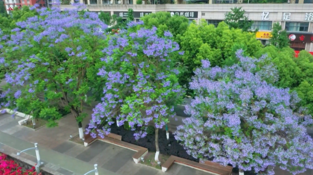 进入5月,分布于巴南区龙洲湾公园和通江公园的蓝花楹陆续开花,一簇簇蓝紫色的花朵将城市点缀得分外美丽。