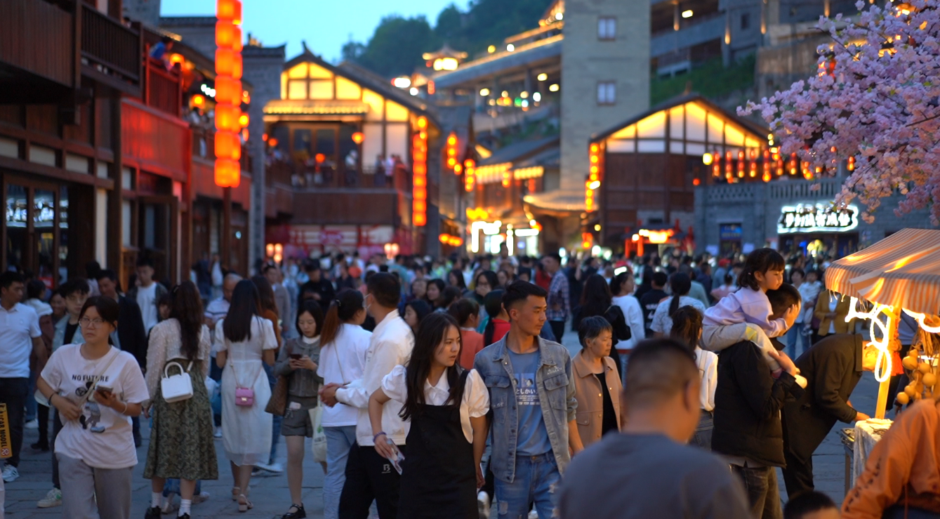 “五一”节期间,天生城文旅街区每天人流如织,成为万州区最红的游客打卡地。