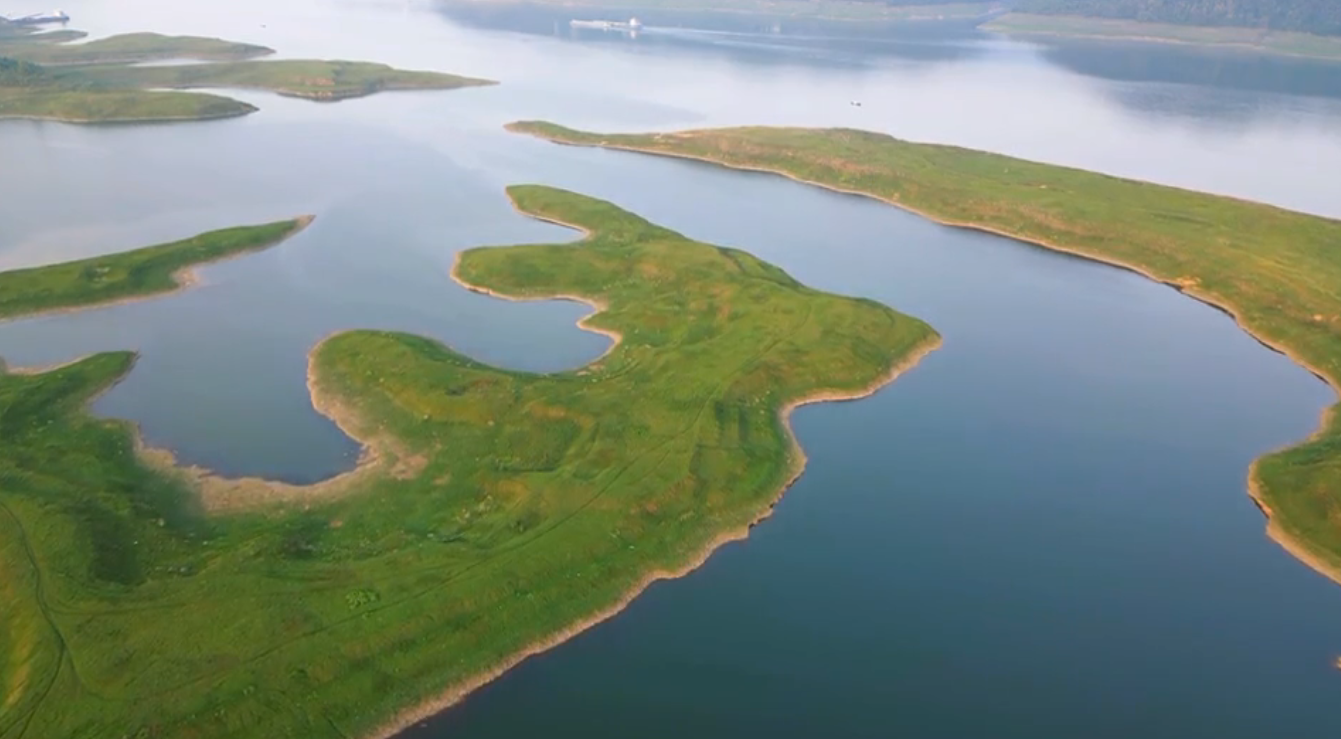 随着三峡库区水位下降,重庆市万州区长江边的滩涂逐渐显露出来,形成了一个个大小不一的半岛或者岛屿,构成了一道独特的风景线。