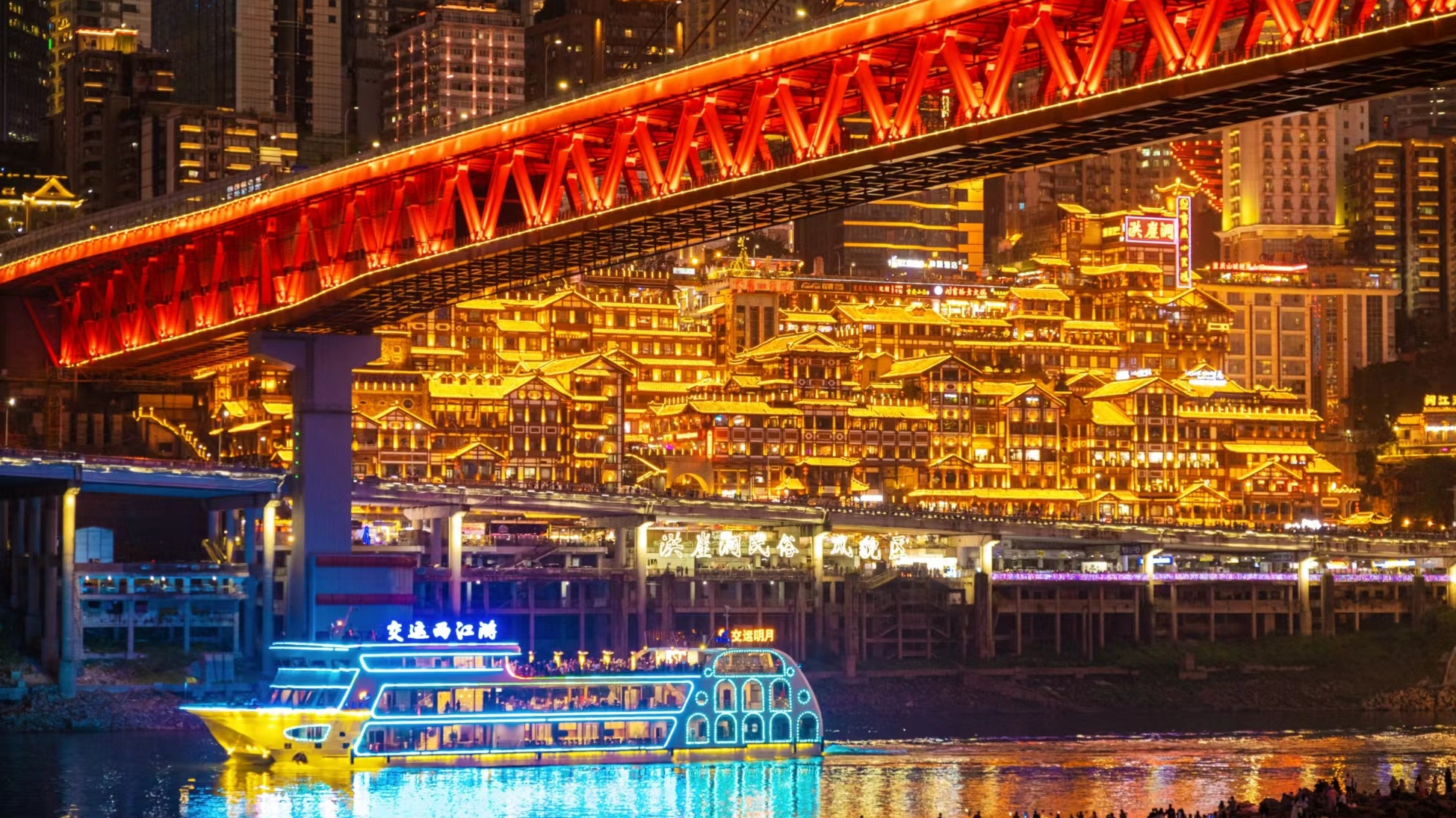 夜晚下的洪崖洞灯火辉煌、光影错落。