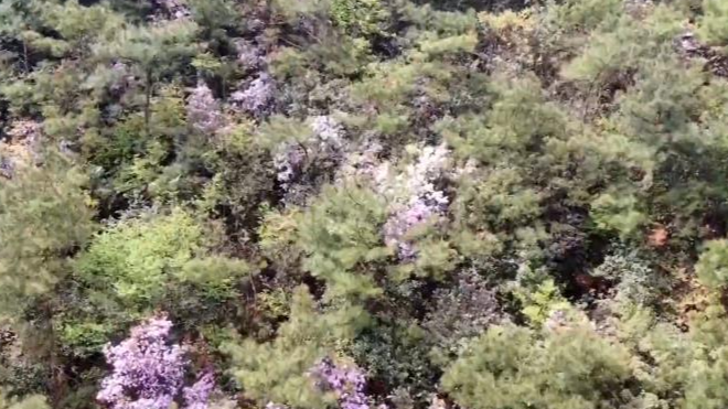 从4月中旬开始,垫江县宝鼎森林公园就开出了一团团野生紫色杜鹃花,犹如一朵一朵紫色云霞,吸引着游客登山赏花看美景。
