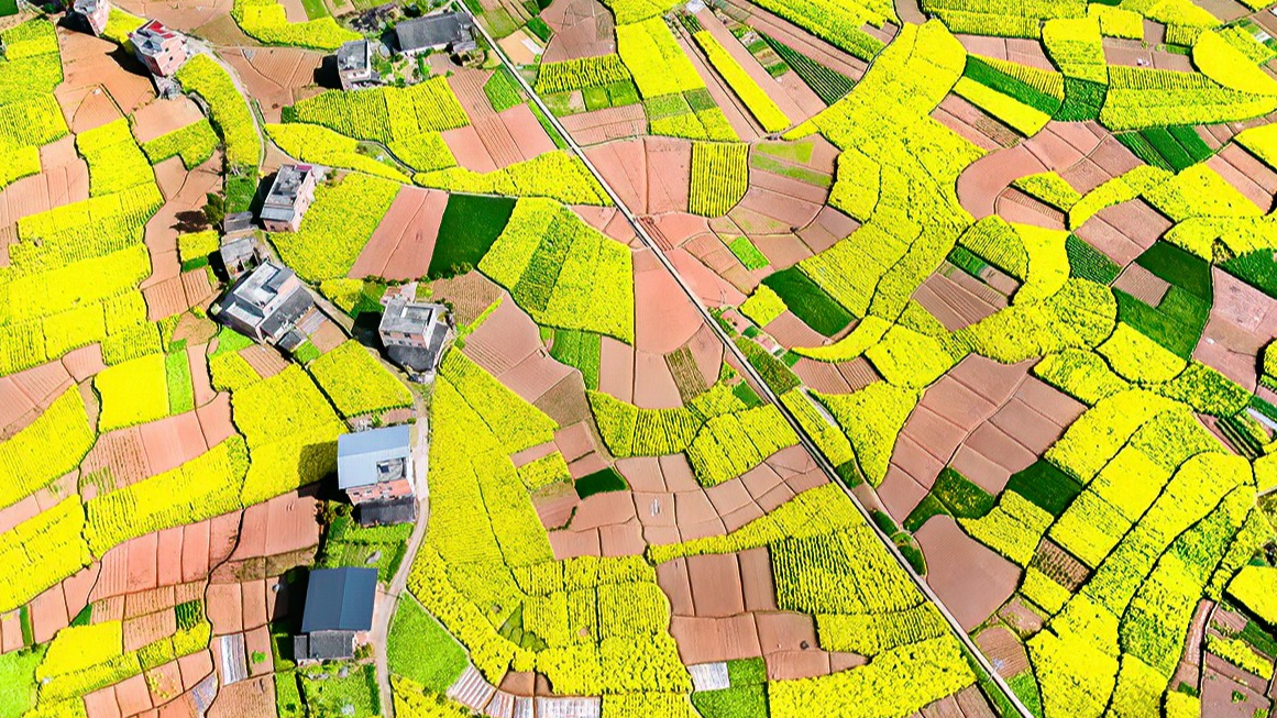 重庆开州温泉镇县坝村1300多亩油菜花向阳而开。