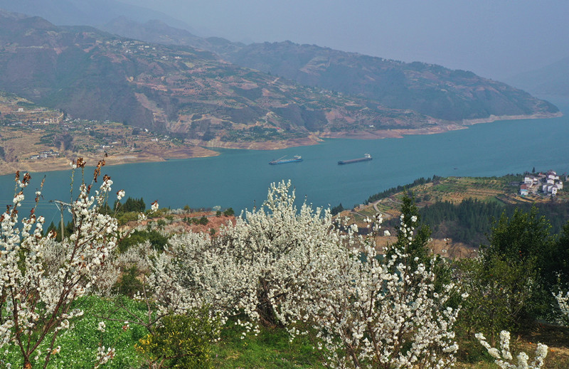 重庆巫山:长江三峡春来早 3月3日,随着气候变暖,位于重庆市巫山县大溪乡长江岸边的2000多亩樱桃花正在怒放。