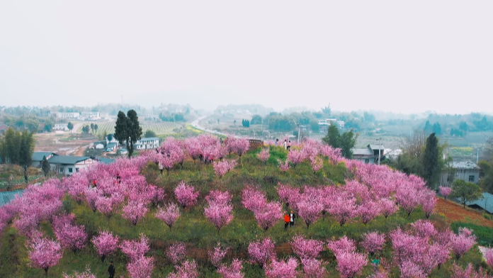 渝北:千亩樱桃花盛开 春日踏青好风光