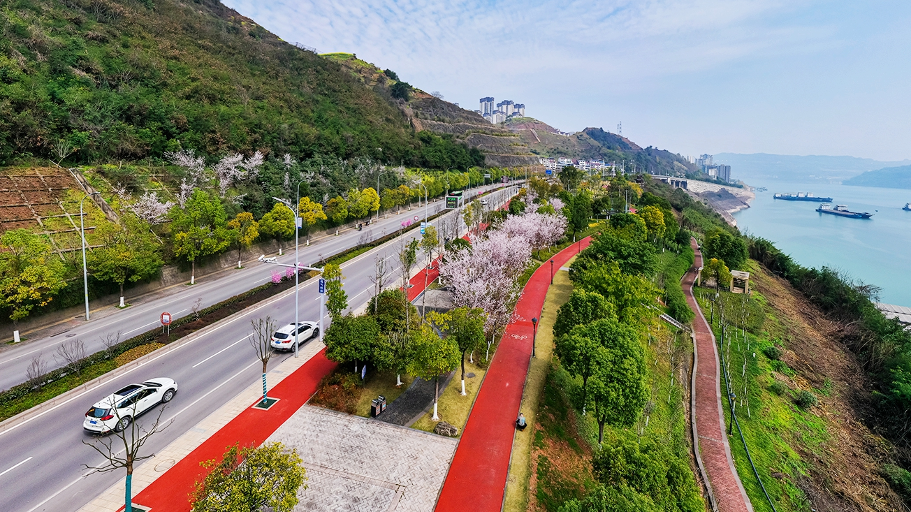 忠州大道:一路锦绣舞滨江 百花齐放、植被翠绿……3月5日,从空中俯瞰忠县城郊,忠州大道五彩缤纷,宛若一路锦绣飘舞在长江之滨,绘就出一幅幅美丽的春光图。