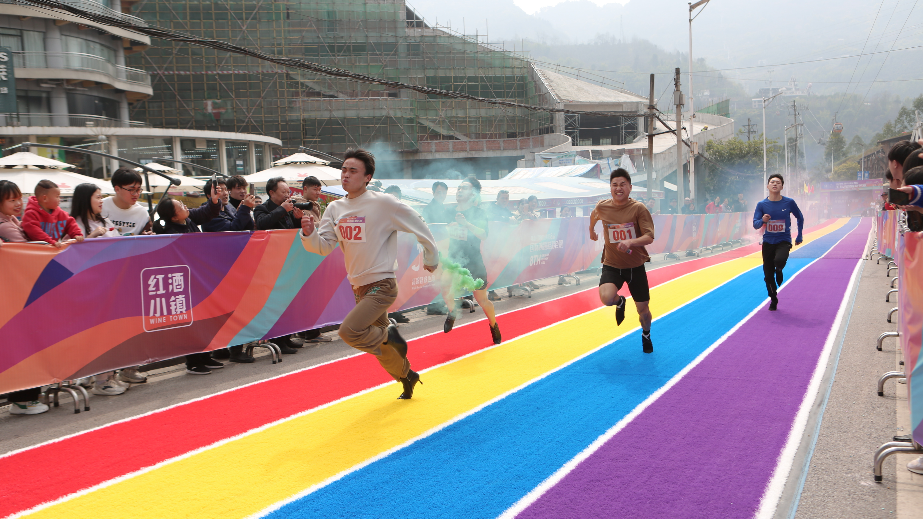 “预备,跑!”随着发令枪响,2023重庆涪陵美心红酒小镇第八届国际高跟鞋彩色跑于3月5日拉开帷幕。时隔两年,这个景区的重要运动赛事全面回归,为旅游消费市场的回暖注入了活力。