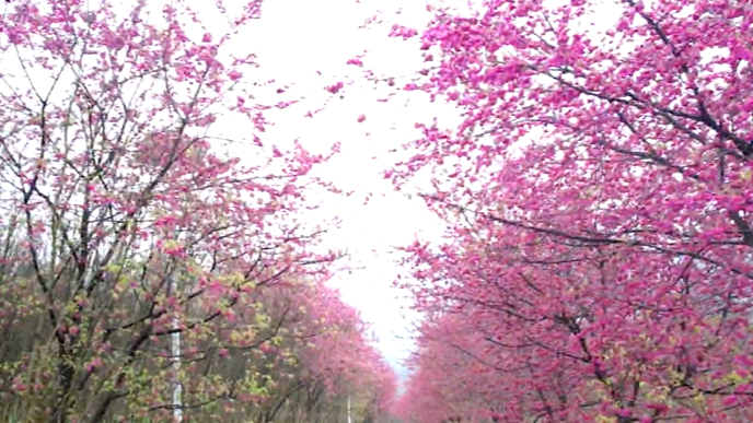 随着气温逐渐回暖,城区主干道上的美人梅也沐着春光竞相盛开,给城市增添了一抹亮丽的景色,引来不少市民游客驻足观赏。