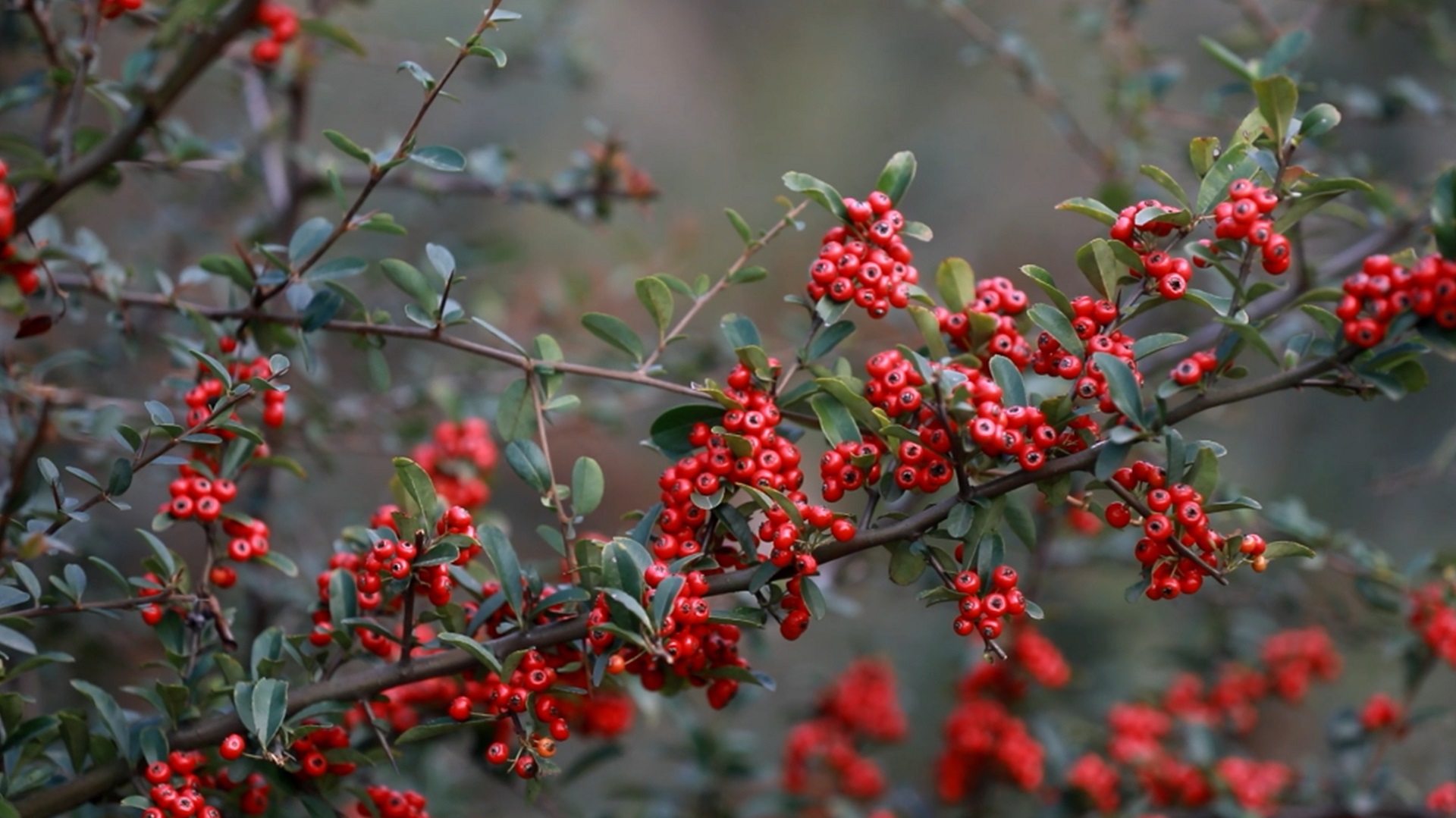 近段时间,重庆忠县石子乡八斗台石庙沟火棘的果实全面进入成熟期。一粒粒,一簇簇,一片片,红亮亮的火棘果成为寒冬里最美丽的风景。