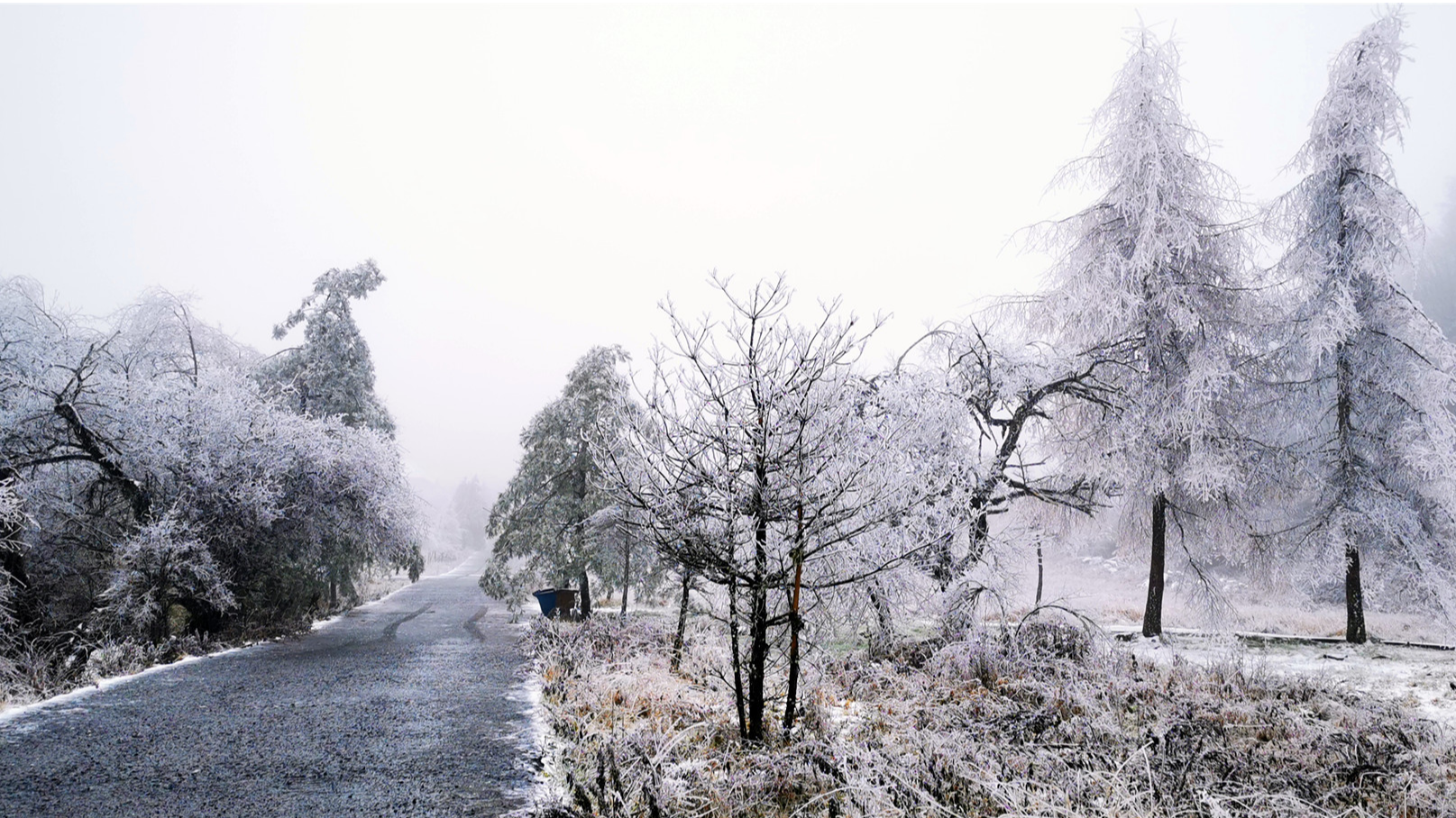 13日凌晨,城口县迎来了今冬的第一场雪。在黄安坝生态科普基地,山体、道路仿佛都被披上了一层“白纱”,静谧安逸。王代军 摄