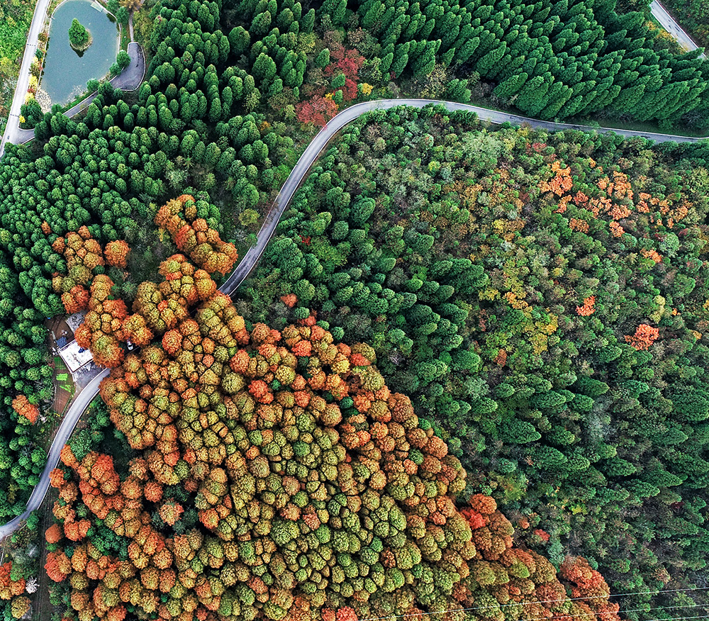 深秋时节,涪陵江北旅游区武陵山国家森林公园美景如画。园内栽种的一大片水杉林和柳杉林,每到这个季节色彩斑斓,像极了彩色的棉花糖。