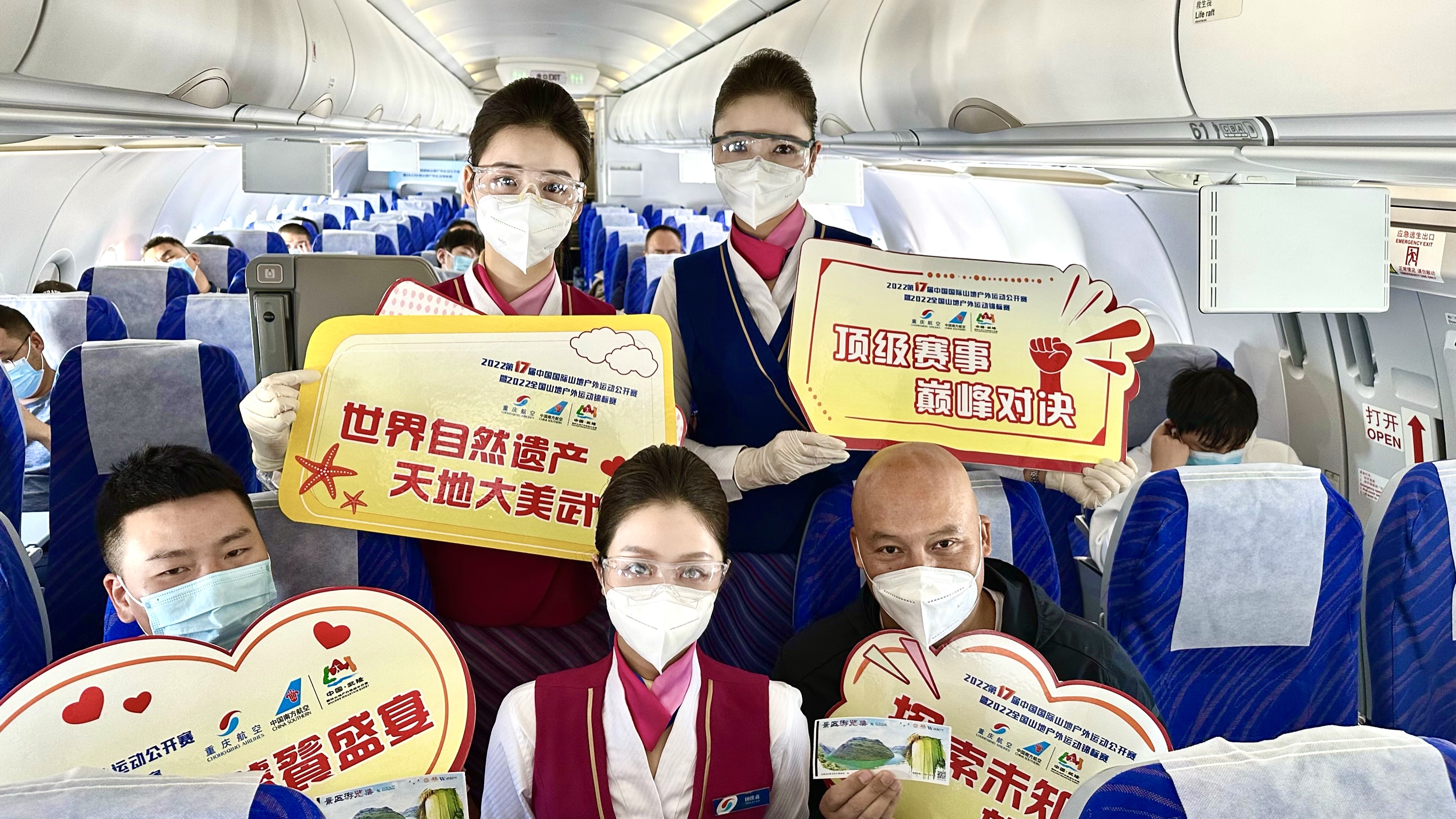 2022第十七届重庆武隆国际山地户外运动公开赛暨2022年全国山地户外运动锦标赛于11月1日正式开赛。10月31日,重庆航空CZ2806航班从广州起飞顺利飞抵重庆,标志着“逐风挽云 大美武隆”的特色主题航班圆满启航。