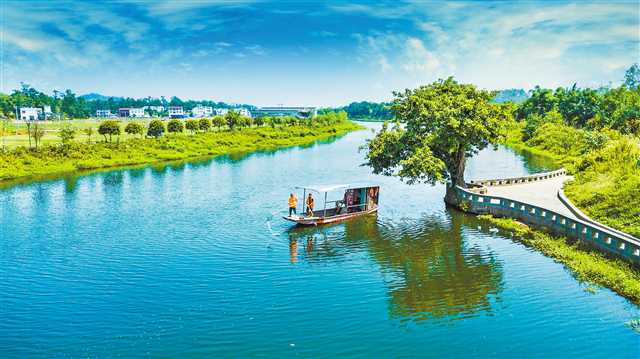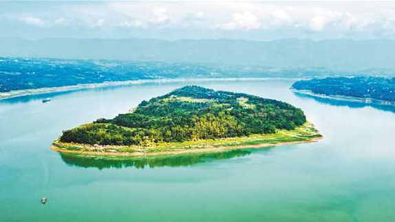 “落日放舟循库心,轻霞入路是盆景。”7月11日,丁宁带着一群小学生登上忠县皇华岛,他边走边向这些小游客介绍:“皇华岛不仅岛美水秀,而且历史文化厚重,还是三峡库区的‘中心点’,未来这里将成为人文魅力岛、生态示范岛、风景旅游岛。”