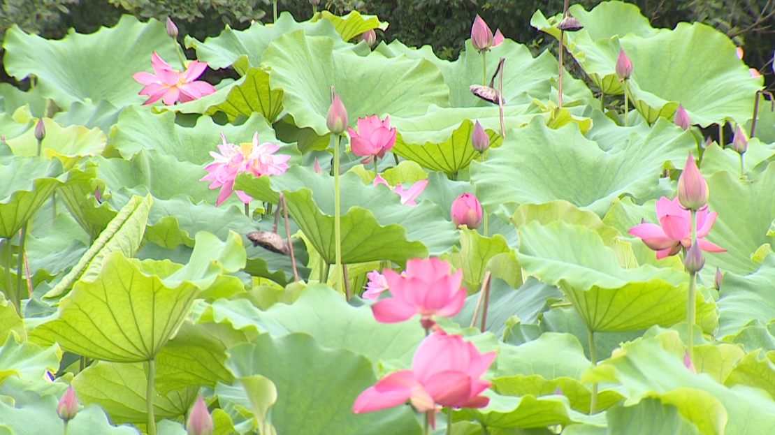 “灼灼荷花瑞,亭亭出水中”。6月下旬,涪陵区江北街道二渡村里的数十亩荷花竞相绽放,一池清荷,美而不妖、俏中带雅,满目美景。