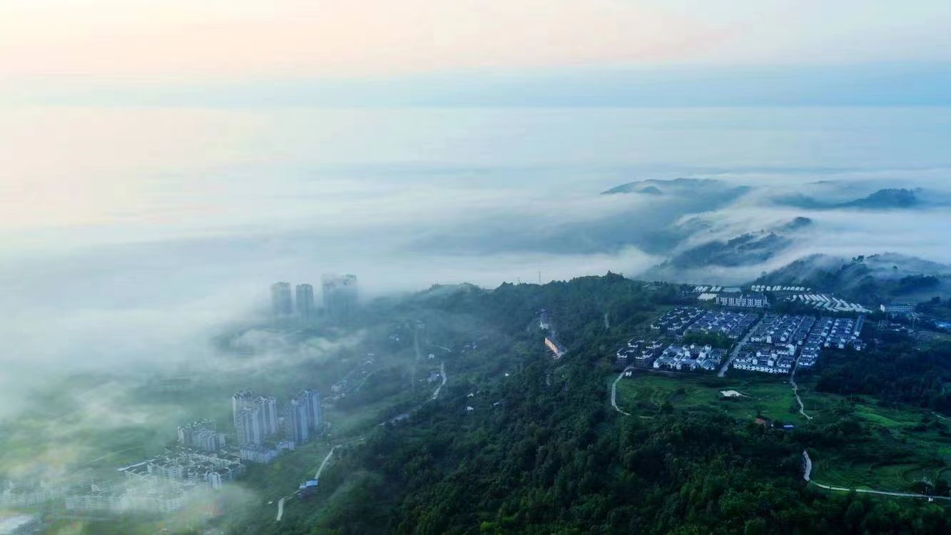 连日来,忠县持续晴好天气。6月30日,忠县城区云雾环绕,放眼望去,好似“云海天宫”。