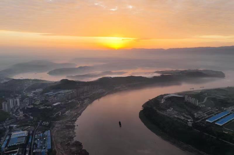 6月16日,在三峡库区重庆忠县皇华岛、独珠半岛上空,出现万丈霞光,蔚为壮观。