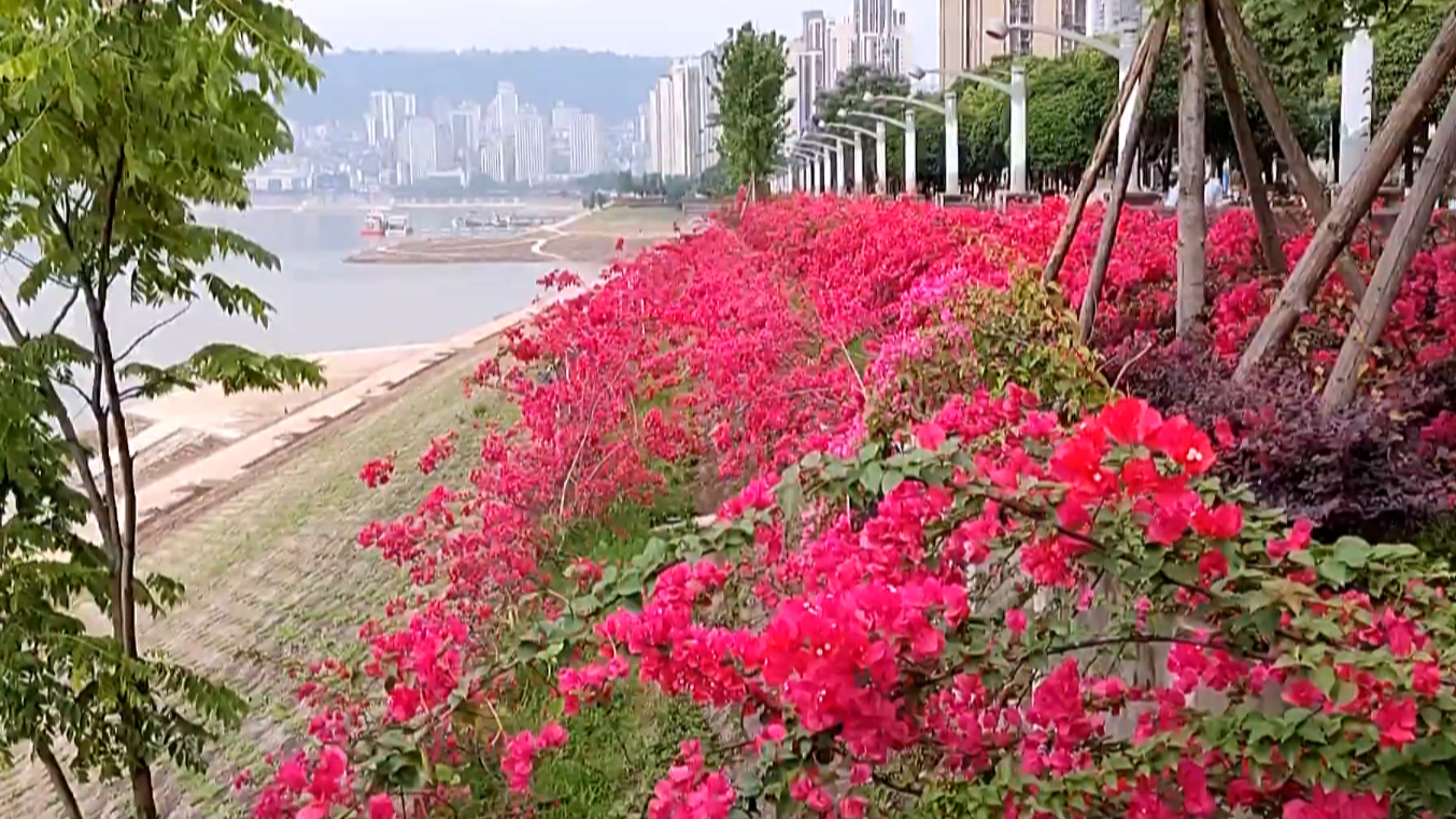 五月,正是三角梅盛开的季节,在万州滨江环湖,三角梅红红火火地开放,成为一道美丽的风景线。