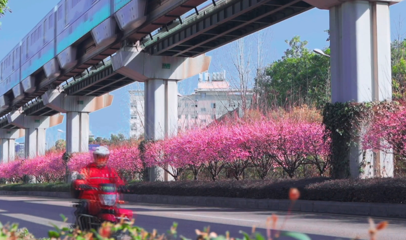 春天到了,天气回暖,巴南渝南大道、龙泽路等多条道路上的鲜花竞相绽放。列车穿行于花海之中,构成一幅美丽的画卷!