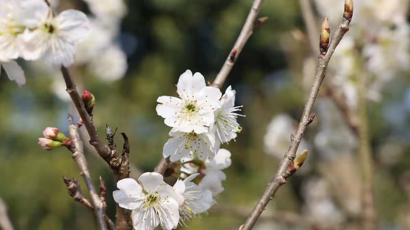 重庆市巴南区鱼洞百胜村种植樱桃3000亩,随着气温回暖,樱桃花现已盛开,花期可持续到3月上旬。