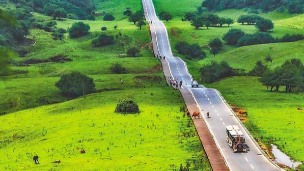 高低起伏的公路两旁,是舒缓的翠绿草甸,远处是苍翠森林和连绵群山,悠然的马匹点缀其间……近日,随着国内一款知名车载智能系统宣传片在全球发布,被网友称为“最美公路”的武隆区仙女山波浪公路及周边景色,让国外更多游客知晓。