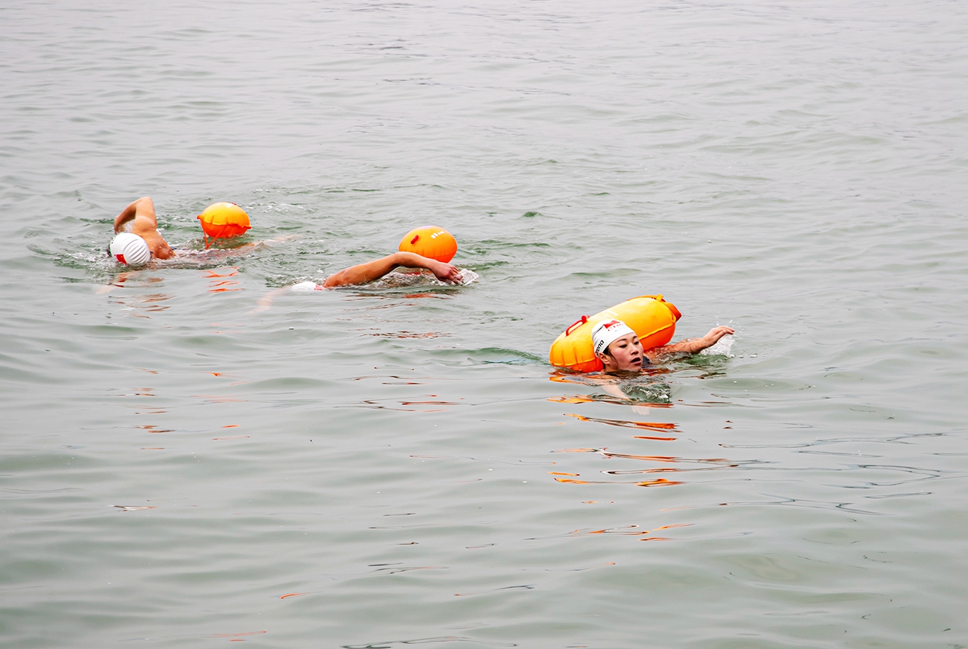 7日下午,重庆市忠县天芝瑞冬泳队的15名队员,齐聚长江忠县城滨江路水域开展迎大雪冬泳赛。