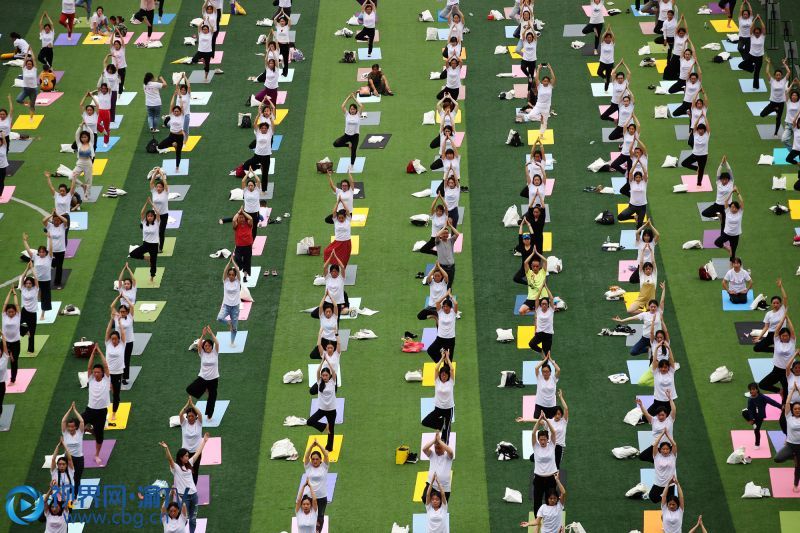 6月21日,在重庆市黔江区体育场,瑜伽爱好者在练瑜伽。