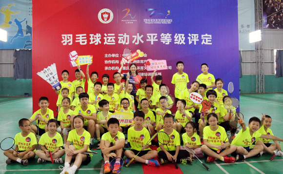 6月30日,全国第一期羽毛球运动水平等级评定正在这里举行,张亚雯不仅作为大部分小朋友的教练,还担任了本次考评的组长。