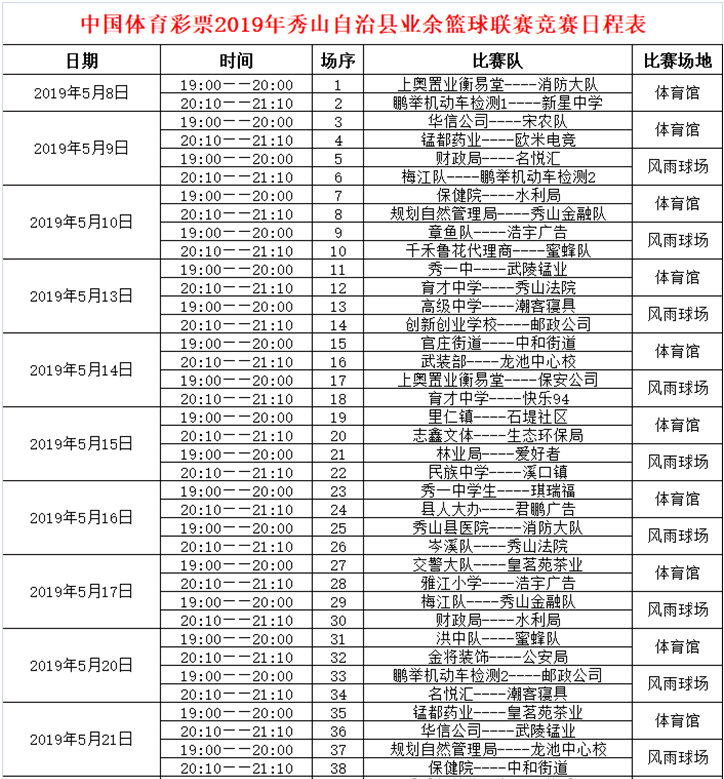 记者从县文旅委获悉,为丰富市民的体育文化生活,由县文化和旅游发展委主办、县篮球协会承办的中国体育彩票·2019年秀山自治县业余篮球联赛将于5月8日在县体育馆开赛!
