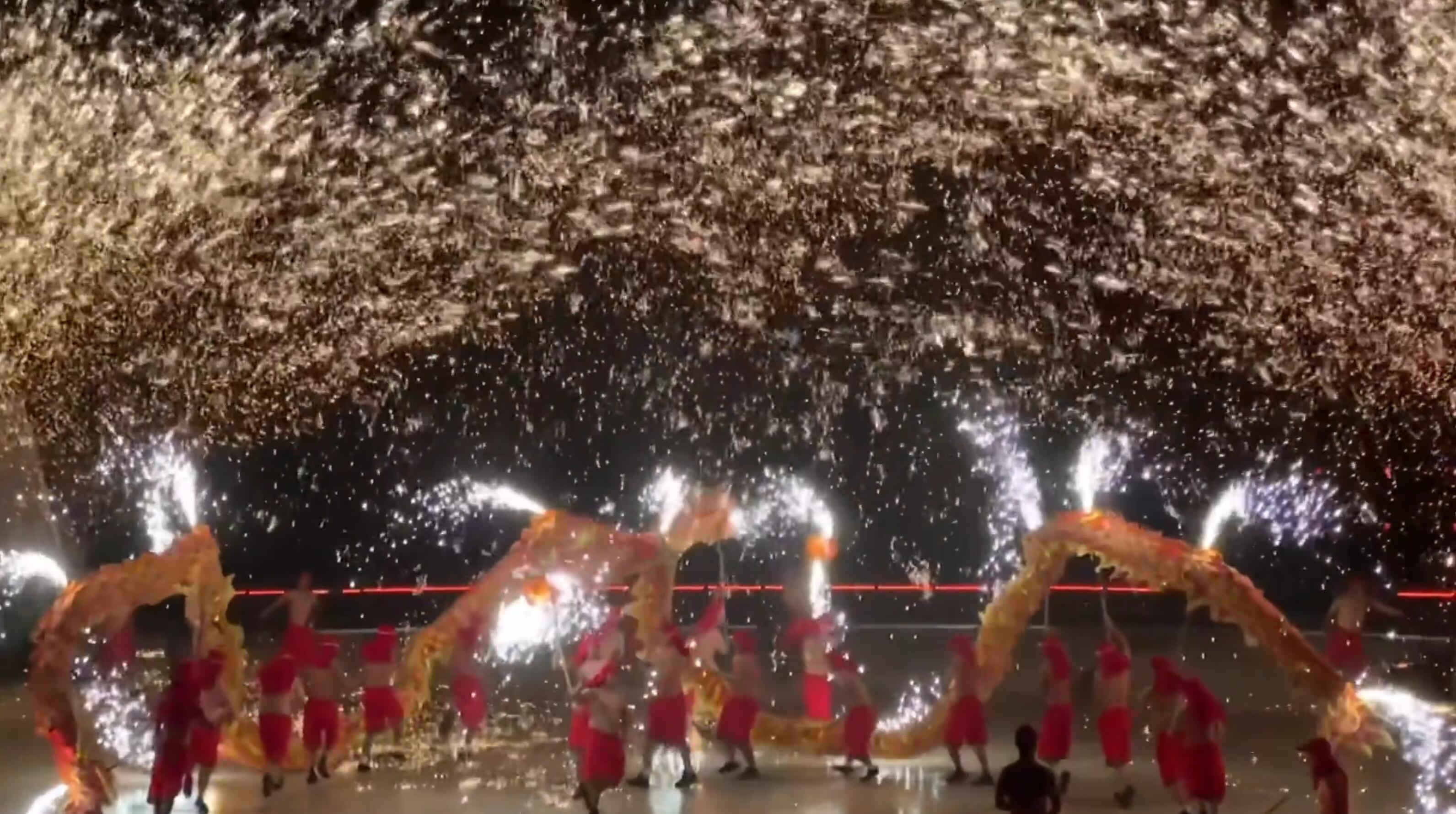 长假期间,铜梁区奇彩梦园景区内,每晚都有国家首批非物质文化遗产——铜梁龙舞的表演。现场气势恢宏,激情四射,好不热闹。