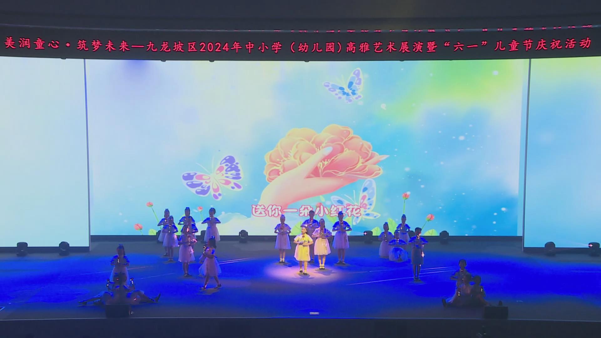美润童心·筑梦未来——九龙坡区2024年中小学(幼儿园)高雅艺术展演节目展播:大型歌舞秀《送你一朵小红花》。