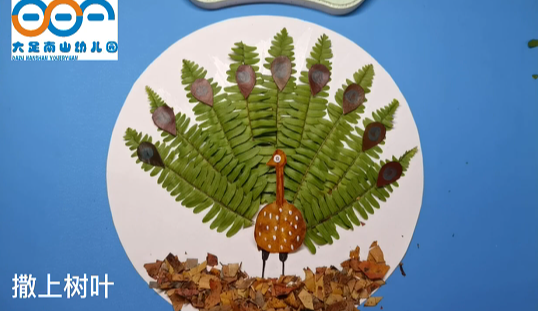一起来用树叶做一幅漂亮的孔雀开屏贴画吧!