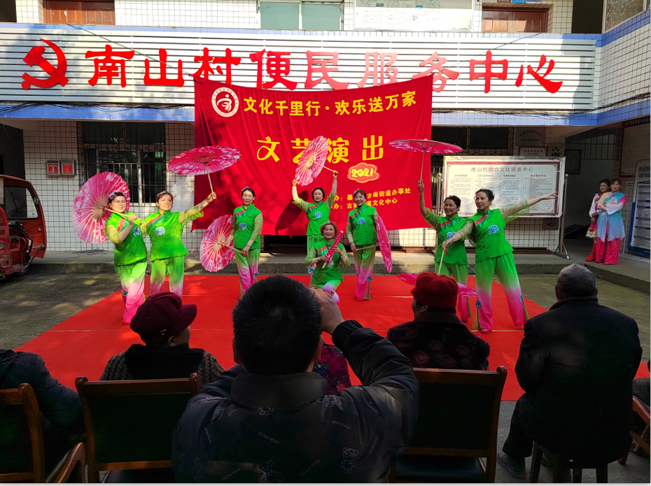 马上就是新年了,为了营造一个良好的新年氛围,丰富广大人民群众的文化生活。连日来,綦江区古南街道组织辖区12个社区文艺队到深入村社开展“文化千里行·欢乐送万家”文艺演出活动。