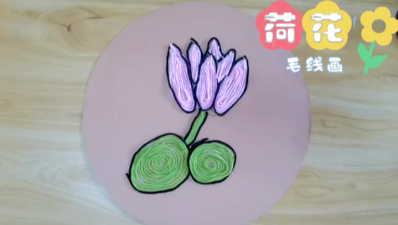 一起来用毛线做一幅漂亮的荷花贴画吧!