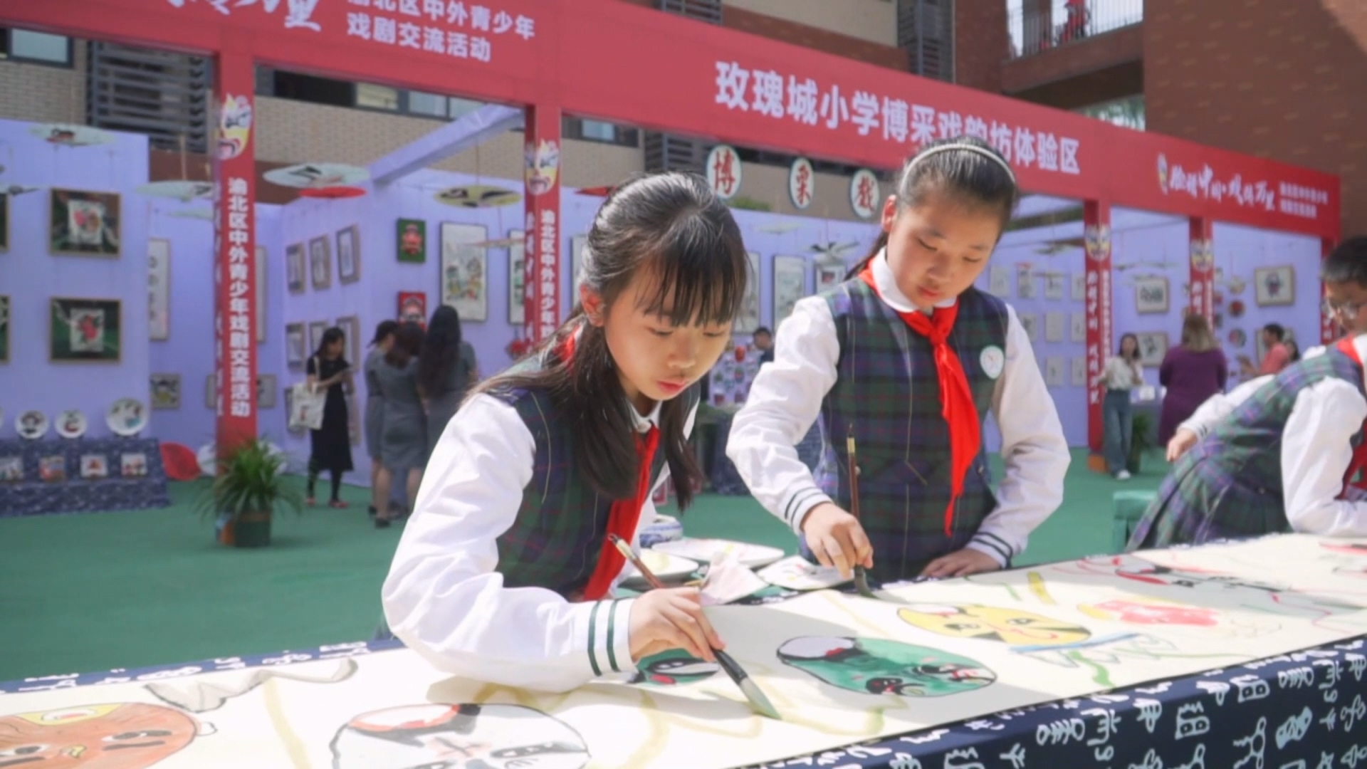 用画笔与人物“对话” 中外青少年共绘戏剧脸谱