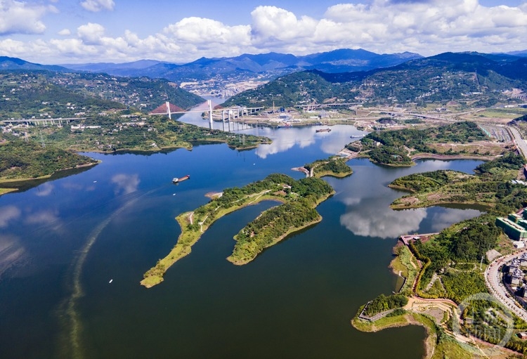 中午时分,长江北岸的重庆果园港码头一派繁忙,来自海内外各地的货物在此高效集散;果园港上游5公里处,有一座郁郁葱葱的江心岛——广阳岛,经过多年的生态修复,如今全岛植被覆盖率达90%以上,成为长江上游一颗耀眼的“生态明珠”。