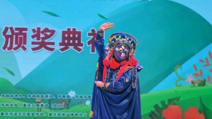 6月19日,渝北区龙山小学校内,著名川剧演员石承霜正在为孩子们表演川剧变脸,精湛的技艺让现场观众发出阵阵惊呼。这是春知花·亚欧青少年摄影大赛颁奖典礼的现场,也是“脸谱中国·戏传万里”重庆—东盟青少年戏剧交流行动的内容之一,这场表演通过推特、脸书、优兔等海外平台,向东盟国家的多所中小学校的学生进行了展示。