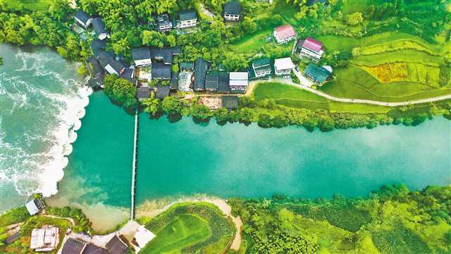 7月,四川省开江县与重庆市梁平区交界处,渠江支流新盛河蜿蜒流淌,河水清澈见底,时有鱼虾游过。