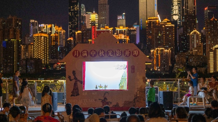 9月15日,南岸区开埠遗址公园观景平台,一场非遗皮影戏表演热闹开场,让市民、游客感受到浓浓的中秋情味,共同传承与弘扬中华优秀传统文化。